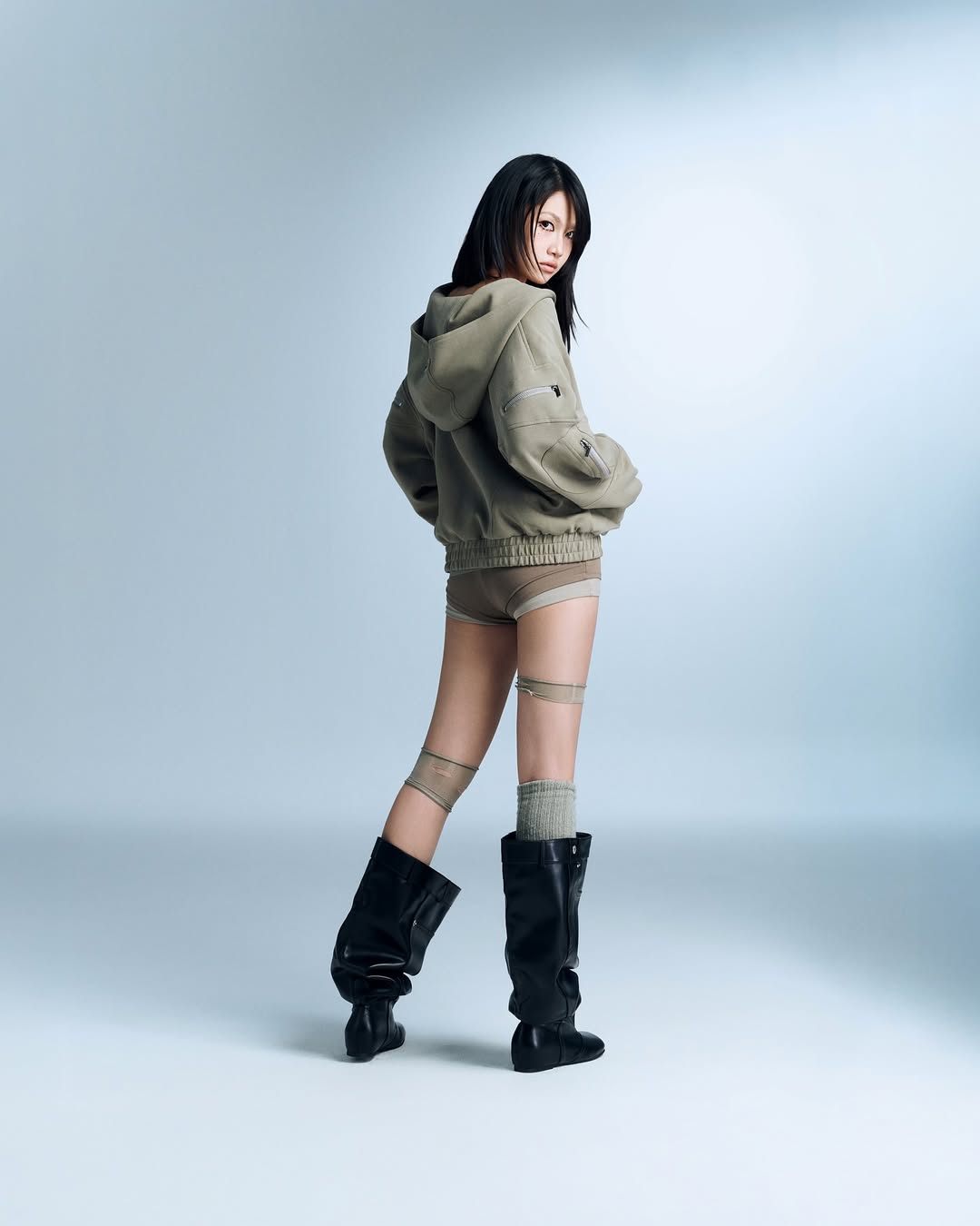 A thick cut-out jacket featuring four zippered pockets on